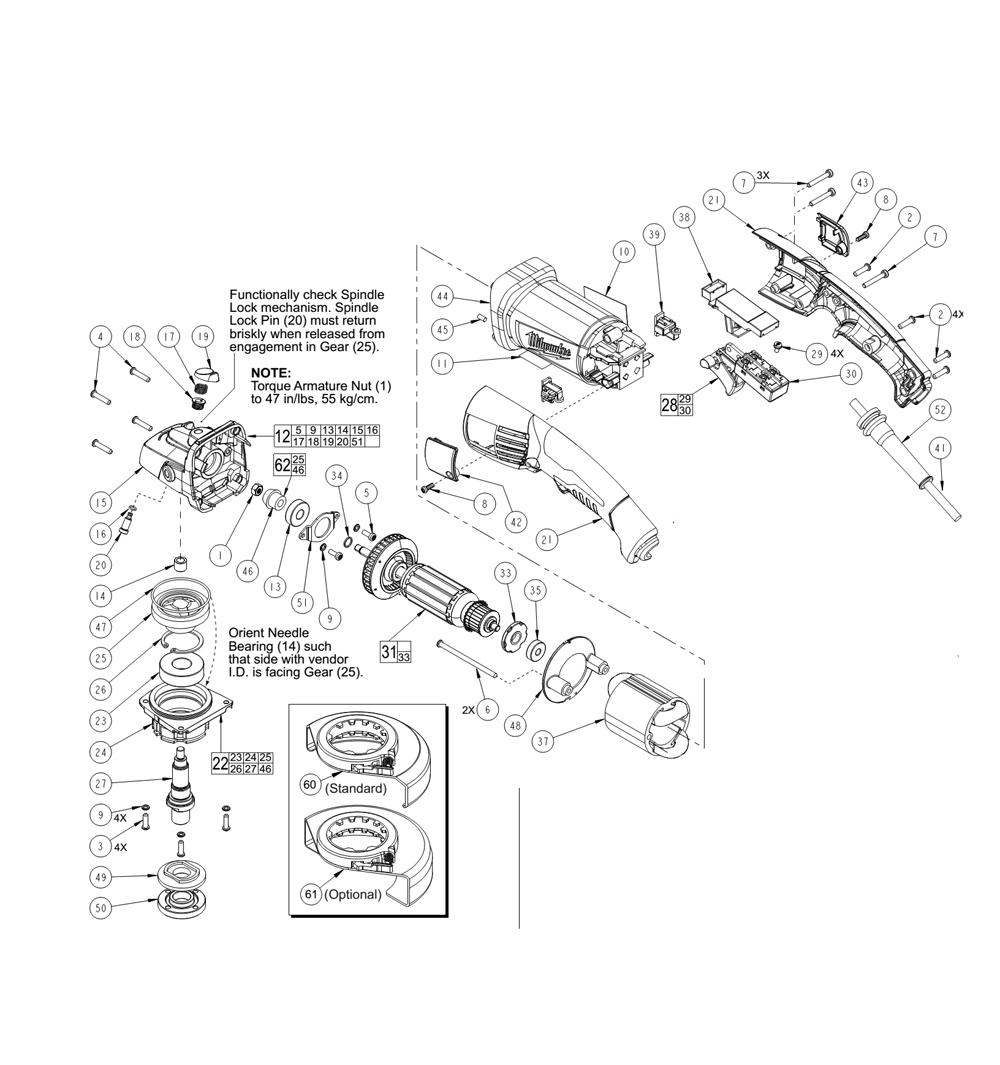 M5 Hex Nut 05-55-0620 1M4 X 16 T-20 Screw 05-88-1200 2M4 X 14mm Pan Hd. T-20 Screw 05-88-1210 3M4 X 20 Pan Hd. T-20 Screw 05-88-1250 4M4 X 10 Pan Hd. T-20 Screw 05-88-1280 5M4 X 76 T-20 Screw 05-88-1290 6M4 X 25.4mm Pan Hd. Slt. T-20 Screw 05-88-1650 7M3.5 X 10 Pan Hd. Plastite T-10 Screw 05-88-1610 8Split Washer 05-90-0225 9Service Nameplate 12-20-6116 10Warning Label 10-15-1230 11Gearcase Assy Service Kit 14-29-0312 12Ball Bearing Se 608zz 02-04-0620 13Needle Bearing 02-50-0025 14O-ring 34-40-0450 16Spring 40-50-1330 17Spindle Lock Tube 42-42-0580 18Spindle Lock Button 42-42-0590 19Spindle Lock Pin 42-60-1660 20Rear Handle Assembly 14-34-0800 21Replaces 14-73-0410 Spindle/hub Assembly 14-73-0411 22