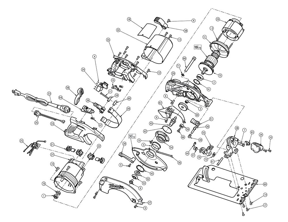 Ball Bearing 02-04-0847 1Ball Bearing 02-04-1850 2Needle Bearing 02-50-2423 3Switch Screw 05-78-0120 4Lower Guard Sleeve 45-22-0605 55/16-18 X 9/16 Screw 06-75-0035 65/16 -18 L.h. Thread Bolt 06-75-5850 7 06-75-5860 810-24 X .5 Pan Hd. Tapt. T-25 06-82-5314 912-24 X 3/4” Pan Hd. Taptite Screw 06-82-5358 10 06-82-5474 11 06-82-7270 128-16 X 1.75 Pan Hd. Slt. Plast. T-20 06-82-7395 13K50 X 16mm Delta Pt 05-88-0305 14Slide Lock 44-20-0640 1510-14 X .562 Plastite T-25 06-82-0090 16M5 X 2.24 X 18 Slotted T-20 Pt Screw 06-95-6290 17Service Nameplate Kit 1641755 18Armature 16-70-0255 19Field 18-70-1500 20Brush Assembly 22-18-0065 21Replaced By 22-22-1030 - Brush Tube Assembly 22-22-0030 22Quik-lok Cord Set 48-76-5110 23Switch 23-66-2176 24Electronic Brake Assembly 14-20-0526 25