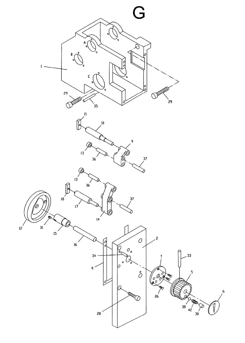 Pulley ZX-01101A 1Cylindrical End Set Screw ZX-S2 2Cover ZX-01734 3Cross Head Screw ZX-S4 4Cylindrical End Set Screw ZX-S2 5Pedal Rod Support ZX-01701 6Lining ZX-01715 7Hex Nut TS-1540231 8Hex Cap Bolt ZX-01712 9Bed Stand (for 40" Models, Serial # 010611zx3... ZX-01102A 10New Bed Stand (for 1880zx, Serial # 010618zx3... ZX-01102CN 10Fixed Support ZX-01703 11Socket Head Cap Screw TS-150341 12Taper Pin ZX-S13 13Water Leaking Chip Guard ZX-01705 14Cross Head Screw ZX-S15A 15Hex Nut TS-1540121 16Bolt ZX-01702 17Flat Washer M20 ... TS-1550111 18Motor Mounting Plate (for 14" Models) ZX-01122A 19Cover ZX-01726 20Cross Head Screw ZX-S4 21Key ZX-S22 22Main Motor (for 22" Model) ZX-S23BC 23Wire Conduit (for 1440/1640/1840zx) ZX-017609A 24Wire Conduit Support ZX-01708 25Locking Plate ZX-01706 26Cross Head Screw ZX-S27 27Cross Head Screw ZX-S15 28Water Reception Plate ZX-01711 29Cross Head Screw ZX-S4 30Coolant Tank ZX01510 31Cover ZX-01714 32Cross Head Screw ZX-S4 33Nut ZX-S34 34Coolant Indicator ZX-S35 35Cross Head Screw ZX-S36 36Nut TS-1540072 37Washer, M10 Flat 5051911 38Plain Washer TS-1550071 38Hex Cap Screw TS-1491041 39Extending Plate ZX-05753 88